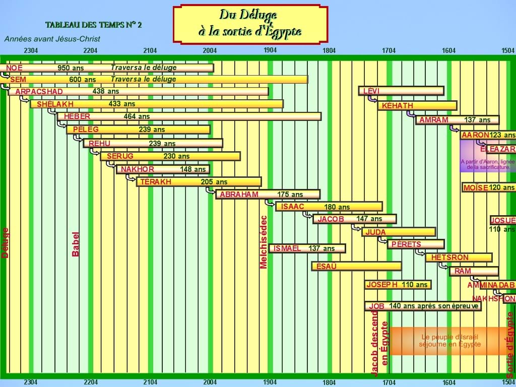 Du déluge à la sortie d'Égypte (Abraham, Isaac, Jacob et ses fils de -2304 à -1504 avant JC )